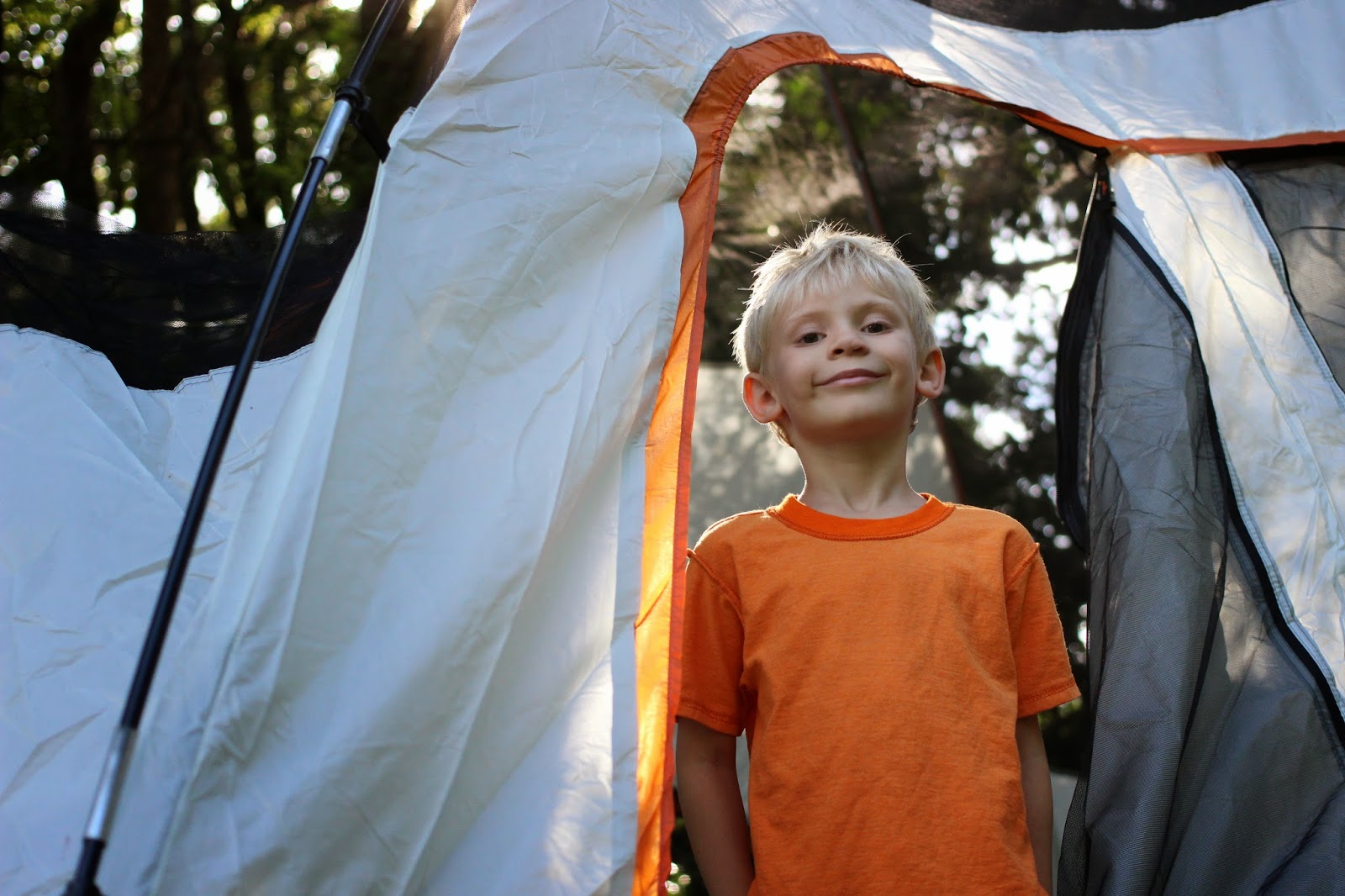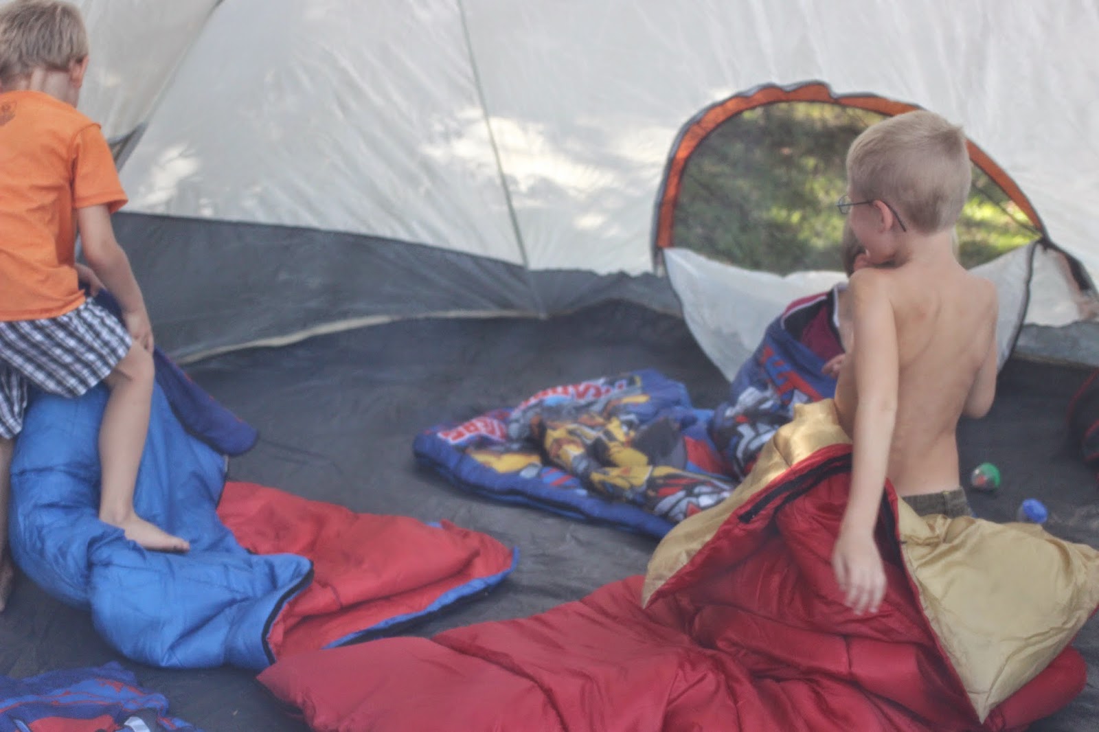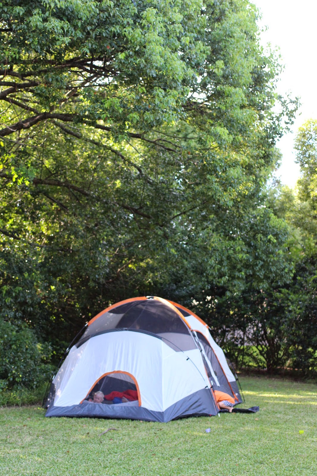 So, last night when the boys asked to make a bedsheet tent on the porch, I suggested we break out the real thing.