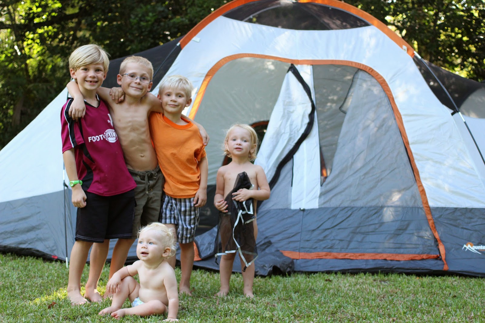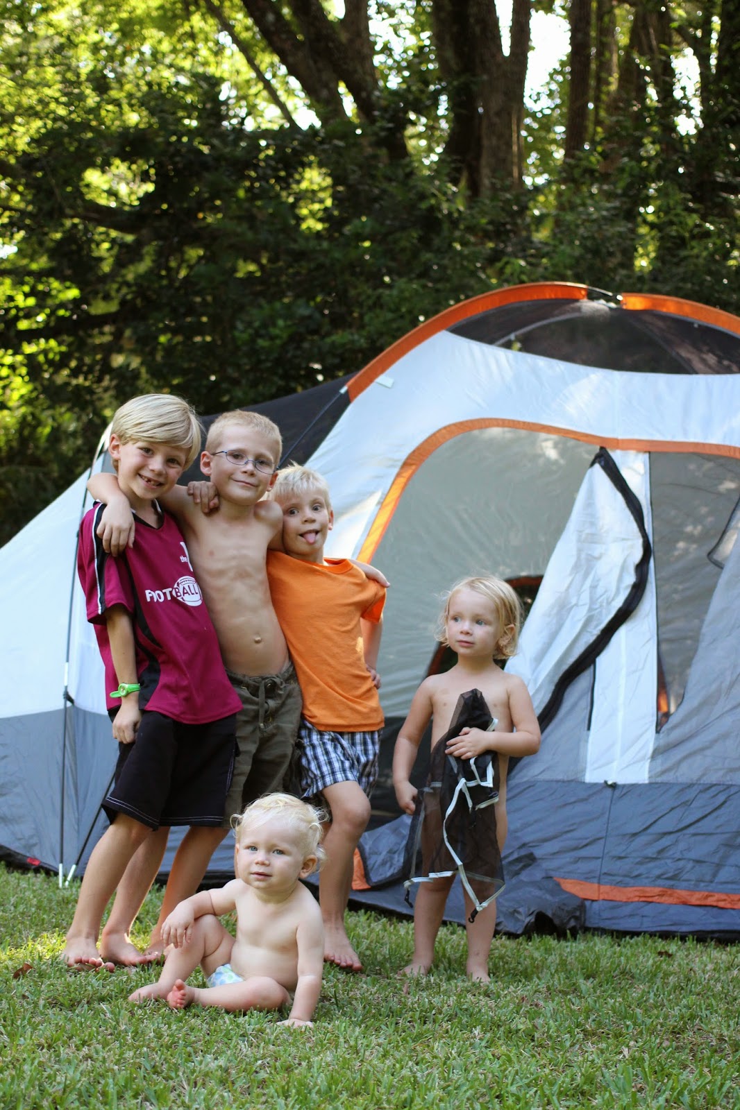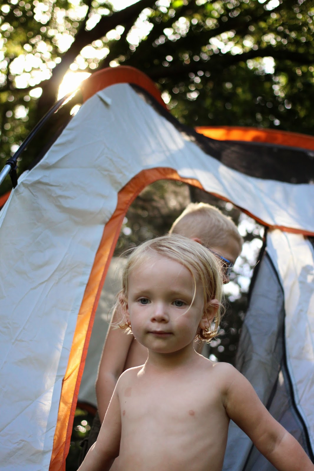 So, last night when the boys asked to make a bedsheet tent on the porch, I suggested we break out the real thing.